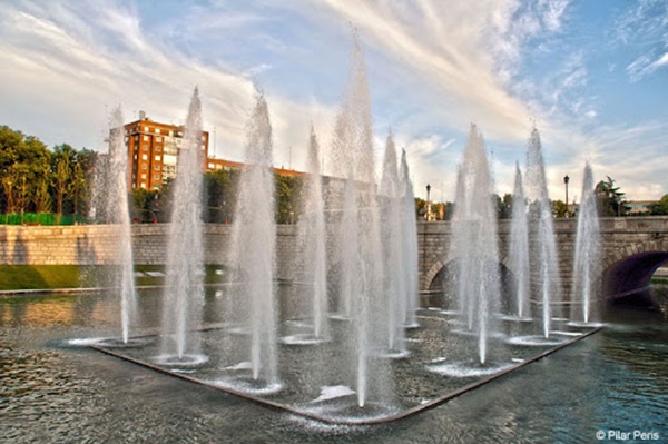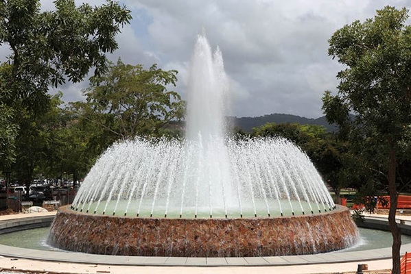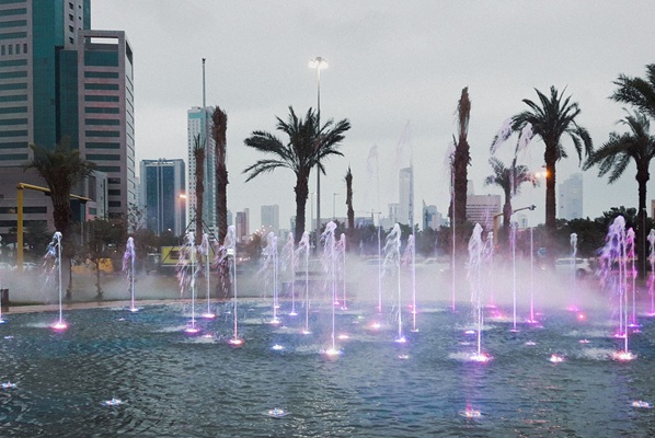A programming fountain features automated water patterns controlled by software, creating dynamic and synchronized water displays.